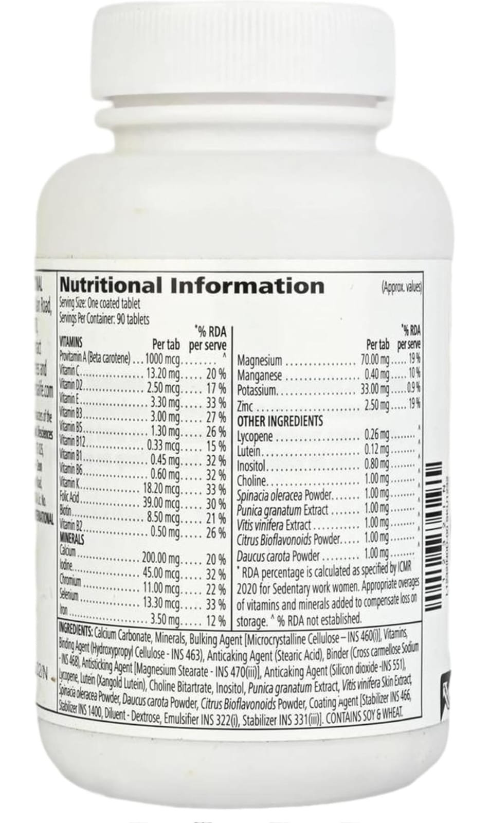 Includes a blend of vitamins (such as A, C, D, E, B-complex), minerals (like calcium, magnesium, zinc, iron), and selected herbal ingredients that contribute to vitality and overall health.
